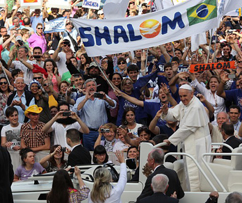 Papież Franciszek: „Chciałbym podziękować wszystkim członkom ruchów, stowarzyszeń, wspólnot i związków kościelnych. Jesteście darem i skarbem dla Kościoła!…” (fot. SJ/REFA Copyright 2013)