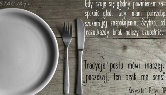 „Gdy jest problem należy od razu go rozwiązać. Gdy czuje się głodny powinienem zaspokoić głód, gdy mam potrzebę szukam jej zaspokojenia. Szybko, od razu, każdy brak należy uzupełnić. Tradycja postu mówi inaczej: »poczekaj, ten brak ma sens«” – radzi w pierwszym kroku o. Pałys.