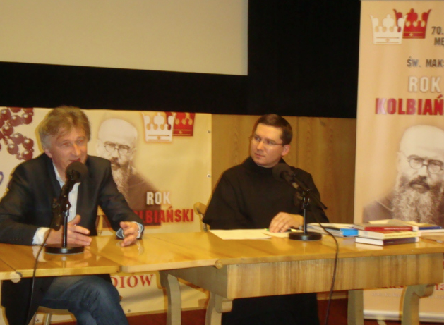 Foto od lewej: Paweł Woldan – reżyser i o. Marek Wódka – rzecznik Roku Kolbiańskiego.