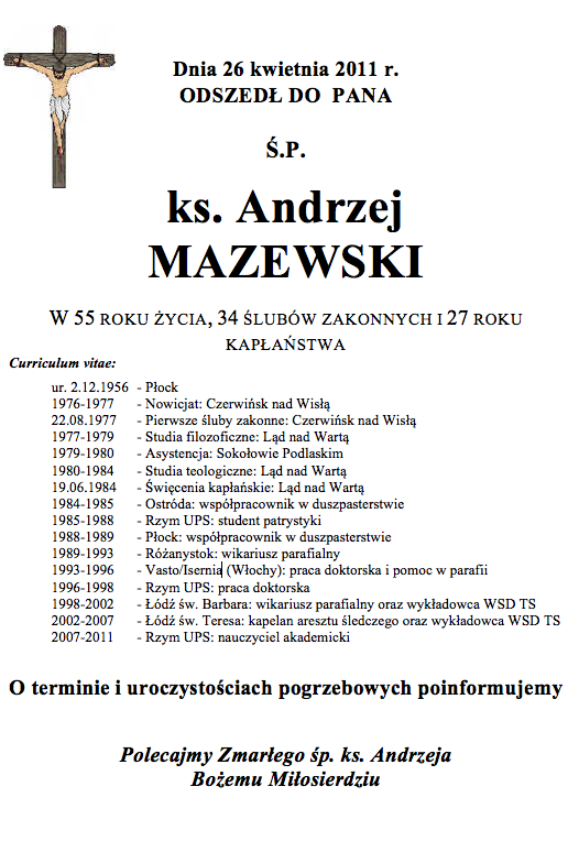 Informacja o pogrzebie (z 01.05.2011 r.):