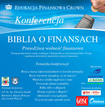 Edukacja Finansowa CROWN w Polsce organizuje jednodniowe konferencje „Biblia o finansach”, aby dotrzeć z Bożymi wskazówkami na temat zarządzania pieniędzmi do ludzi w różnych miastach całego kraju. Jak zabezpieczyć się przed skutkami kryzysu finansowego? Jak wyjść z długów? W jaki sposób zaplanować domowy budżet? Jak związać koniec z końcem? Kiedy inwestować i na co oszczędzać?
