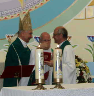 Uroczysta procesja z domu parafialnego do świątyni rozpoczęła niedzielną, ale nie codzienną uroczystość, której najważniejszym i głównym momentem była celebracja Eucharystii. Napisałem niecodzienna uroczystość. Chociażby z tego względu, że wzięło w niej udział dwóch arcybiskupów metropolitów. Miejscowy, kurytybski arcybiskup Moacyr Vitt i arcybiskup gnieźnieński Józef Kowalczyk, Prymas Polski. Także niecodzienna, gdyż specjalnie przybył z Polski – na uroczystą celebrację 60-lecia Polskiej Misji Katolickiej – ks. Ryszard Głowacki SChr, przełożony generalny Towarzystwa Chrystusowego. W uroczystościach polonijnych uczestniczył także ks. prałat Tomasz Grys – radca nuncjatury apostolskiej, który specjalnie przybył na to świętowanie ze stolicy Brasilii.