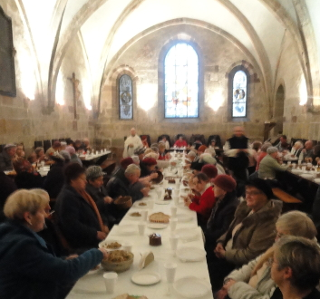 Następnie wszyscy spotkali się w średniowiecznym refektarzu, gdzie mogli posilić się smacznym, cysterskim bigosem (od którego właśnie to spotkanie przyjęło nazwę – „niedziela bigosowa”). Drożdżowe ciasto i gorąca herbata sprzyjały do wspólnej i radosnej rozmowy. Miłych gości obsługiwali gospodarze.