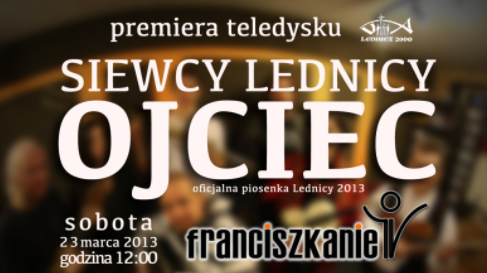 Ponad dwa tygodnie temu zaś odbyła się premiera innego teledysku zrealizowanego przez telewizję FranciszkanieTV – tym razem dla zespołu Siewcy Lednicy, który to animuje śpiew (i oczywiście tańce) na Młodzieżowych Spotkaniach nad Lednicą. Franciszkanie włączyli się w medialne promowanie spotkania, a jedną z formą było stworzenie teledysku do utworu „Ojciec”, który będzie hymnem tegorocznego spotkania nad Lednicą.