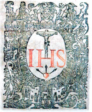 Monogram imienia Jezus w takiej właśnie formie zdobił wejście do Kolegium św. Barbary Uniwersytetu Paryskiego, gdzie go z pewnością widział św. Ignacy z Loyoli, kiedy tam studiował. On też po św. Bernardynie, jeszcze bardziej niż ten franciszkanin, przyczynił się do rozpowszechnienia tego monogramu. Ignacy, założyciel Zakonu Towarzystwa Jezusowego, umieszczał często monogram imienia Jezus na początku ważniejszych listów i innych dokumentów. Także w formie drukowanej stosował trójliterowy skrót IHS jako znak na najważniejszych publikacjach, np. na wydaniu Ćwiczeń Duchowych, a także na oficjalnej pieczęci założonego przez siebie Towarzystwa Jezusowego.