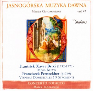 Na płycie znajdują się utwory: Missa Brevis Františka Xaver Brixi oraz Vesperae Dominicales Franciszka Perneckhera. Utwory pod dyrekcją Marka Toporowskiego wykonał Zespół instrumentów historycznych CONCERTO POLACCO oraz zespół trąbek barokowych. Jako soliści wystąpili: Anna Krawczyk, sopran; Piotr Olech, alt; Maciej Gocman, tenor; Piotr Zawistowski, bas i Mirosław Borczyński, bas. Na instrumentach muzycznych zagrali: Judyta Tupczyńska, skrzypce pierwsze; Małgorzata Feldgebel, skrzypce II; Marek Caudle, wiolonczela; Stanisław Smołka, kontrabas; Marek Toporowski, positivo; Tomasz Ślusarczyk, Stanisław Majerski, trąbki.