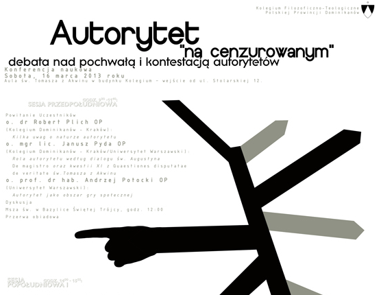 Ogólnopolska konferencja zatytułowana „Autorytet »na cenzurowanym«. Debata nad pochwałą i kontestacją” odbędzie się 16 marca w Auli Świętego Tomasza w budynku Kolegium w Krakowie.