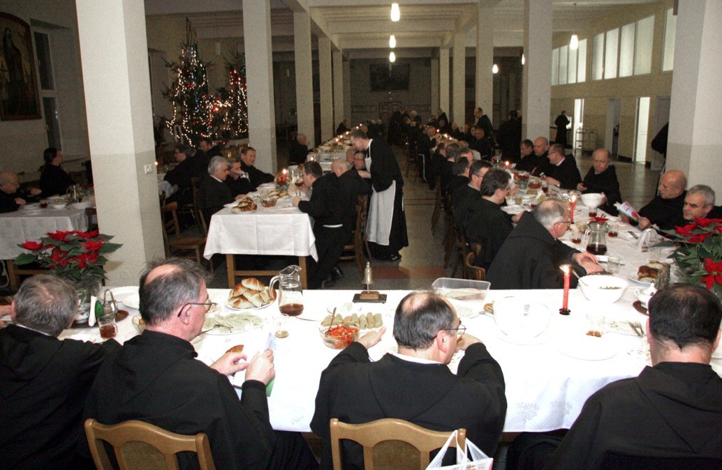 Tradycyjnie w wieczór wigilijny po wieczerzy mieszkańcy Niepokalanowa udają się do Bazyliki przed północą aby w uroczysty sposób wziąć udział w modlitwie Liturgii godzin – Godzinie czytań. W tym roku przewodniczył jej o. Sylwester Pudło OFMConv, pracujący na co dzień w Radiu Niepokalanów. O północy przy śpiewie „Bóg się rodzi” rozpoczęliśmy Msze św. zwaną w naszej polskiej tradycji Pasterką. Głównym koncelebransem był o. Andrzej Kuśmierski OFMConv – proboszcz parafii niepokalanowskiej, który wygłosił okolicznościową homilie. A współkoncelebransami byli: o. Mirosław Bartos OFMConv – gwardian klasztoru oraz o. Grzegorz Bartosik OFMConv. Oczywiście w koncelebrze byli też pozostali ojcowie pracujący przy niepokalanowskim Sanktuarium. Na zakończenie liturgii Mszy św. w procesji zostało przeniesione Dzieciątko Jezus do szopki w Bazylice oraz zostały odczytane życzenia.