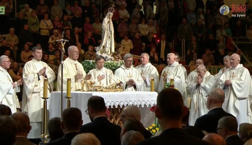 – Kochana Rodzino Radia Maryja, dobrze, że jesteście. Dziękuję Wam za Waszą wiarę, miłość do Matki Najświętszej i za Wasz zapał apostolski. Uświadomiłem sobie, że oglądając nas, czynicie to dobrowolnie, nikt Was do tego nie zmusza. Tak się dzieje dlatego, że to, co daje Radio Maryja, odpowiada na nasze najgłębsze pragnienia i potrzeby. Radio Maryja, opowiadając o Bogu, otwiera nam umysł, budzi nasze sumienie i pobudza nas do patrzenia inaczej. Toruńska rozgłośnia, spełniając swoją misję, daje nam nadzieję i sprawia, że czujemy się pielgrzymami podróżującymi przez życie do wieczności – podkreślił o. Dariusz Paszyński CSsR.