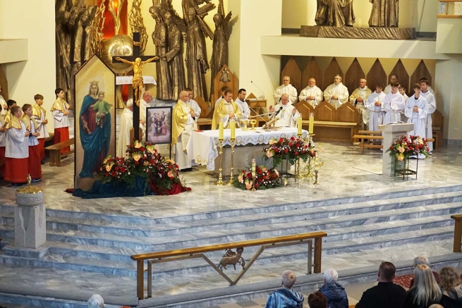 W homilii ks. Inspektor Marcin Kaznowski nawiązał do znaczenia Wspólnoty, która pomaga w przezwyciężaniu samych siebie, na drodze wiary zachęca do pracy nad sobą, pomaga w pokonywaniu trudności, uczy cierpliwości i współpracy w dążeniu do najważniejszego celu – zbawienia. Ksiądz Inspektor poświęcił też figurę Błogosławionego Józefa Kowalskiego – męczennika Różańca Świętego, która obok wcześniej postawionych, Świętego Franciszka Salezego, Świętego Jana Bosko i Błogosławionego Augusta Czartoryskiego, stanowi wystrój świątyni.