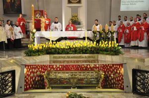 Na Mszy Świętej obecni byli również parafianie kościoła pw. Św. Andrzeja Boboli w Nawsiu (diecezja rzeszowska). Pod koniec uroczystości Ks. Bp Tadeusz Pikus przekazał relikwie świętego na ręce tamtejszego proboszcza ks. Marka Marchuta.