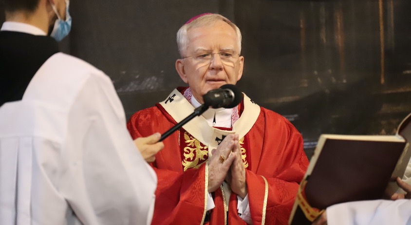 Metropolita krakowski przypomniał objawienie Matki Bożej jakiego doświadczył Rajmund Kolbe w Pabianicach, gdy wybrał dwie korony – białą i czerwoną, symbolizujące czystość i męczeństwo – ofiarowane mu przez Maryję.