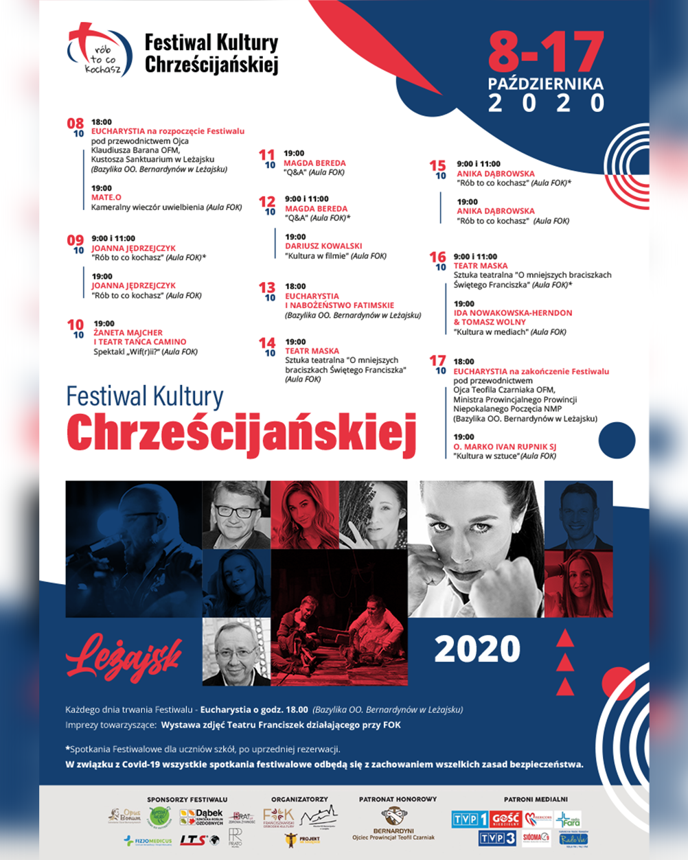 W najbliższy czwartek (8 X) rozpocznie się w Leżajsku już V edycja Festiwalu Kultury Chrześcijańskiej „Rób to, co kochasz”. Festiwal potrwa do 17 października, a każdego dnia będą miały miejsce inspirujące spotkania z gośćmi znanymi ze świata telewizji, Internetu, kultury i sportu.