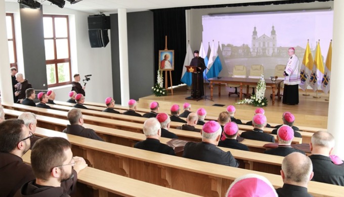 – Chcemy, aby wyrazem naszej pamięci o św. Janie Pawle II, ale także trwałym Jego pomnikiem tu, na kalwaryjskiej górze, była ta aula, w której się gromadzimy – mówił kustosz sanktuarium, o. dr Konrad Cholewa OFM, witając zebranych Księży Arcybiskupów i Biskupów.