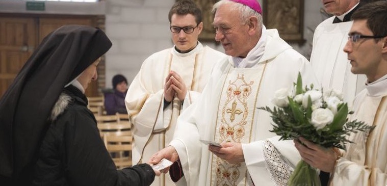 Eucharystii przewodniczył bp Andrzej Suski, który wygłosił równiez okolicznościowe słowo Boże. Podkreslił w nim, że „ofiarować się Bogu z Jezusem to mieć udział w Jego zbawczej misji, w tym również w trudach wynikających z obranej drogi”. Jezus nie ukrywa, że pójście za Nim nie jest łatwe. Niemniej ci, którzy się odważyli, którzy „za własny styl życia przyjęli Jezusa ubogiego”, ci zostali nazwani przez Niego solą ziemi i światłem świata, bo ich życie zaczęło promieniować Ewangelią.