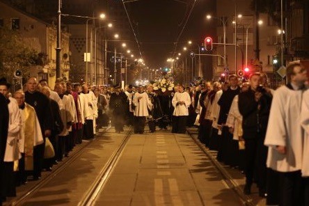 Po zakończeniu liturgii wyruszyła procesja z relikwiami św. Faustyny z kościoła jej poświęconego do łódzkiej katedry, w nawianiu do drogi, którą przemierzyła z parku Wenecja w Łodzi do katedry św. Stanisława Kostki, gdy po raz pierwszy zobaczyła Pana Jezusa cierpiącego.