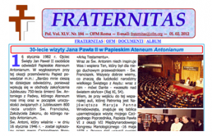 W numerze m.in. o: Międzynarodowej Papieskiej Akademii Maryjnej w Rzymie, jubileuszu franciszkańskiego sanktuarium w Rabida, kapitule namiotów prowincji włoskich, VIII kursie formacyjnym w Istambule oraz peregrynacji relikwii św. Bernardyna ze Sieny. Polska wersja periodyku w formatacie PDF.