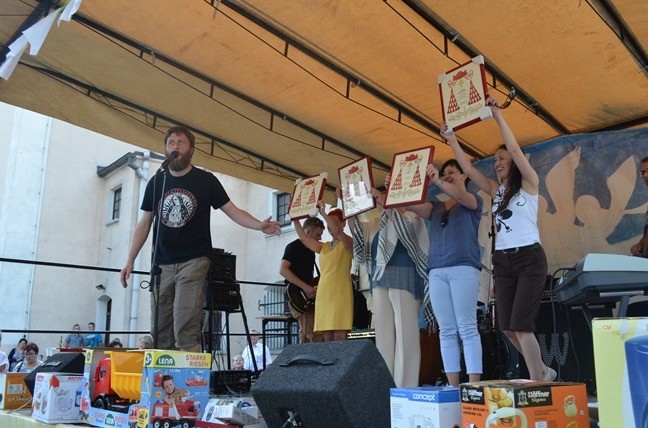 Od rana odbywał się IV Turniej siatkówki plażowej i I Turniej Streetballa, które były okazją dotworzenia dwóch nowych boisk do koszykówki i do plażowej piłki nożnej. Po uroczystej Mszy Świętej, na której pożegnaliśmy braci Walentego i Cordiana rozpoczął się piknik podczas którego zaprezentowały swoje umiejętności grupy muzyczne Coraggio i Hecny Burtnik, oraz adepci szkoły gitarowej. W barakowozie materiał dziennikarski zbierały dziennikarki Radia Fort, a w przerwach można było zachwycać się umiejętnościami akrobatycznymi grupy Big Jump i popisami małej grupy cyrkowej. Wśród wielu atrakcji nastąpiła prezentacja i otwarcie pracowni garncarskiej. Wieczorem wszyscy zostali zaproszeni na pokaz filmu „Mama” w reżyserii Magdaleny Bartoszewicz z udziałem pakoskich aktorów działających przy naszej parafii. Po projekcji odbyła się premiera najnowszego spektaklu Santo Fuego „Miłosierny Samarytanin” w reżyserii Agaty Kaźmierowskiej. Wszystkie grupy działają przy naszym klasztorze w Pakości. Dziękujemy młodzieży i ich rodzicom za zaangażowanie pełne radości, za ciasta, sałatki, smakołyki i twórczą obecność.