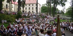 Prawdziwie była to obfitość wielu pielgrzymów przybyłych z najdalszych stron diecezji Gliwickiej i Opolskiej. Większość z nich to Tercjarze, którzy po powitaniu wyruszyli z modlitwą różańcową na Kozią Górę do Zielonego Krzyża. Widok to niesamowity, gdy tylu Pielgrzymów modli się i słucha konferencji Ojca Mariana Szymańskiego OFM Conv z Głogówka. Piękna nauka ukazywała konieczność dążenia do świętości, która skierowana jest zwłaszcza do naśladowców Świętego Franciszka żyjących w świecie. Śpiew Godzinek, to także obfitość wiary, która płynęła z ust wyrażających miłość serca do Boga, Zakonu i przyrody, która była świadkiem świadectwa obfitej miłości pielgrzymów. Po powrocie do Sanktuarium, była chwila wytchnienia i rozmów, bo przecież była tam obfitość znanych braci i sióstr, których można spotkać na szlaku wiary.