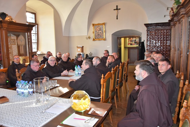 Minister Prowincjalny o. Jacek Koman OFM wyraził wdzięczność za pracę przełożonych i wychowawców w dzisiejszych trudnych czasach, za ich zaangażowanie i dużą odpowiedzialność. Zalecał powrót do źródeł franciszkanizmu, poprawienie współpracy klasztorów z Referatem Powołaniowym. Stwierdził, że musimy dawać świadectwo żywej wiary, bez którego nasza posługa ma słaby wymiar i nie skutkuje powołaniami z miejsc gdzie są nasze klasztory. Najbliższy czas – obchody jubileuszu naszej Prowincji oraz jubileuszów całego Zakonu do 2026 r. – daje możliwość powrotu do źródeł pobożności Brata Mniejszego. Podziękował za pełnioną posługę duszpasterską szczególnie w tych klasztorach, w których są braki personalne.