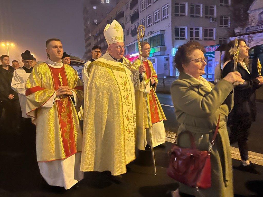 Po Eucharystii nadszedł czas na procesję – świadectwo naszej wiary. Wierni ponieśli relikwie świętych patronów i śpiewając Litanię do Wszystkich Świętych udali się w pochodzie wokół Placu Wolności. Procesja ukazała sens i mistykę kultu związanego z Dniem Wszystkich Świętych. W czasach postępującej sekularyzacji i zwracania się ku magii i zabobonom przez tę uroczystość, ukazującą nasze chrześcijańskie przywiązanie do czci świętych oraz pamięci o zmarłych, przeciwstawiamy się wkraczającej modzie na Halloween, tak niezgodny z naszą wiarą i kulturą.