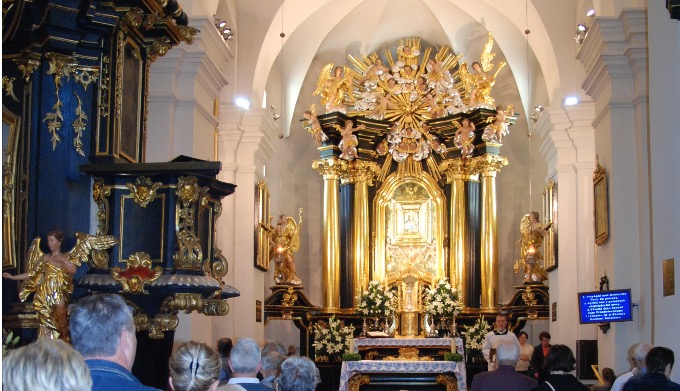 Suma odpustowa o godz. 11.00 była czasem pielgrzymki rolników i pszczelarzy. Mszy Świętej przewodniczył i homilię wygłosił JE. ks. bp Stanisław Salaterski. Homilię rozpoczął od stwierdzenia za Janem Pawłem II, że wymagania Ewangelii są trudne. Jej wypełnienie to nie tylko słowa, ale życie zgodne z jej hierarchią wartości. Powinniśmy tak gospodarować dobrami naturalnymi, aby następne pokolenia także mogły z nich korzystać. Troska o świat musi być też troską o ludzi. W siódmy dzień powinniśmy dbać o nasze sumienie. Wiele ludzi uważa, że dawniej bardziej pielęgnowało relację z Bogiem i owoce pracy były lepsze. Nasza troska o chleb musi być roztropna, bo to Bóg darzy nas swoim błogosławieństwem. Na darmo wstawać o północy, jeżeli Pańskiej nie będzie pomocy. Trzeba darzyć miłością i szacunkiem przodków, a także własną pracę, ponieważ gdy zabraknie serca i szacunku, tam gdzie zboże rosło będzie las. Matka Boża uczy nas wrażliwości na drugiego człowieka i na pracę, a także pomocy, zaradności i zatroskania. Taka postawa potrzebna jest nam wszystkim. Swoją homilię zakończył mówiąc, że gdy sercem wypełnimy naszą codzienność, będzie ona chwałą Boga.