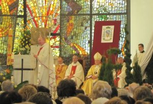 Mszy świętej przewodniczył i homilię wygłosił J.E. ks. abp Henryk Hoser SAC. W koncelebrze uczestniczyli m.in. Przełożony Prowincjalny pallotynów Prowincji Chrystusa Króla ks. Józef Lasak SAC, zastępca Przełożonego Prowincji Zwiastowania Pańskiego ks. Ks. Lesław M. Gwarek SAC oraz kustosz Sanktuarium i Proboszcz Parafii Miłosierdzia Bożego w Ożarowie Maz. ks. Jan Latoń SAC.