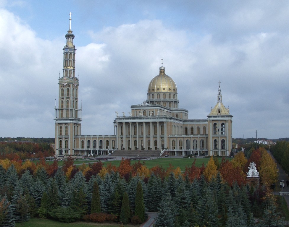 Licheńska świątynia została wzniesiona na planie krzyża. Waży 110 tysięcy ton, jej powierzchnia użytkowa wynosi 25 tysięcy metrów kwadratowych. Jest największą tego typu budowlą w kraju, ósmą w Europie i dwunastą na świecie. Składa się z części głównej, dzwonnicy (wewnątrz znajduje się Maryja Bogurodzica, największy dzwon w Polsce), wieży o wysokości 141,5 m oraz trzech portyków. Prowadzą do niej 33 schody nawiązujące do lat życia Chrystusa na ziemi. Światło wpada do środka przez 365 okien oraz 52 drzwi, co symbolizuje dni i tygodnie w roku. W 1999 roku, kiedy trwały jeszcze prace budowlane, budowany kościół poświęcił Papież Jan Paweł II.
