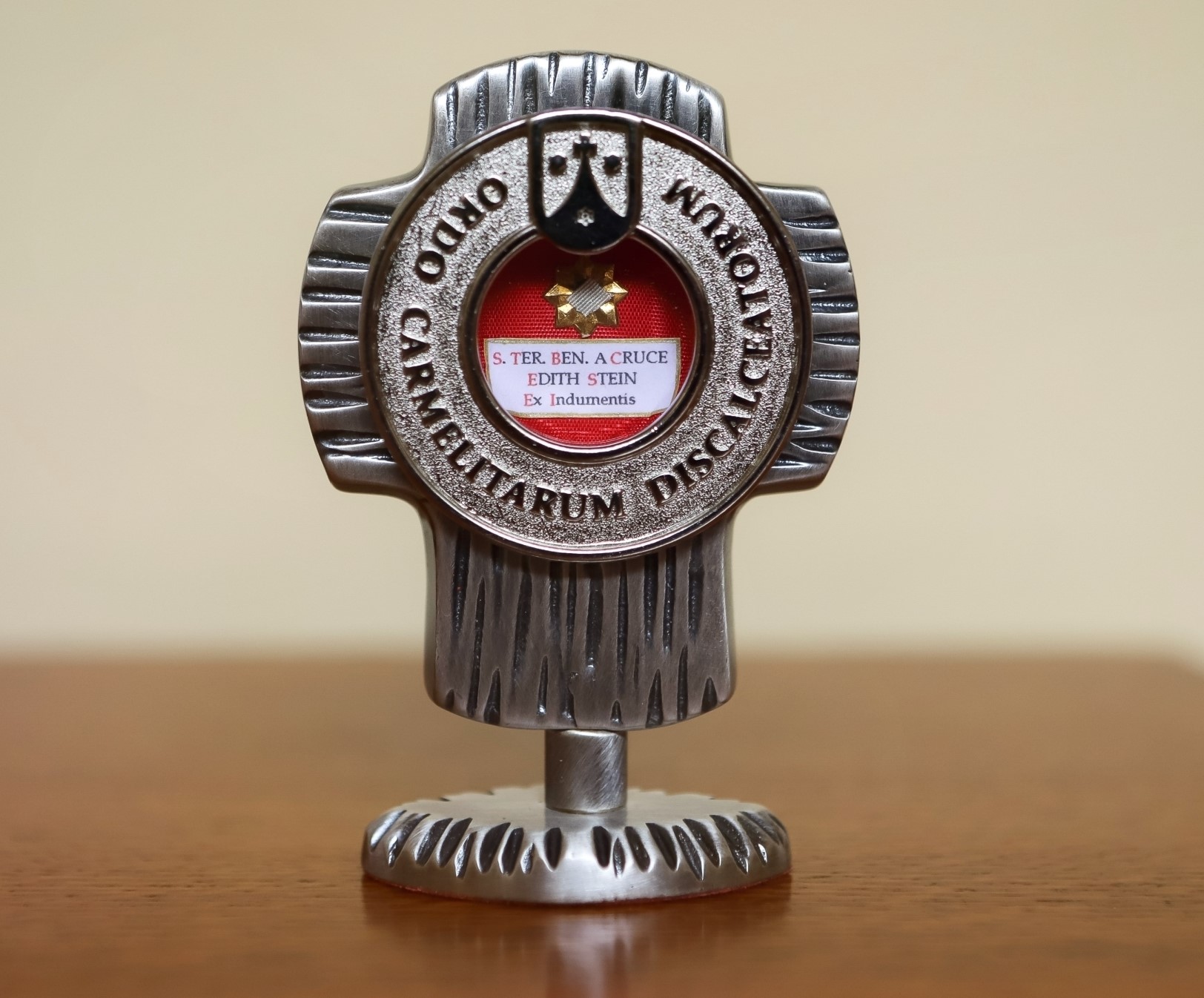 Tydzień wcześniej miało miejsce duchowe przygotowanie parafian na przyjęcie daru relikwii. Na wszystkich niedzielnych Mszach św. głoszone były kazania o Świętej Współptaronce Europy. Przypominano, że ta filozof pochodzenia żydowskiego, żyła w ustawicznym poszukiwaniu prawdy. Znane jest jej powiedzenie, że „świat składa się z kontrastów, lecz na koniec nic z tych kontrastów nie pozostanie. Ostoi się jedynie wielka miłość”. Przyjęła chrzest i wstąpiła do klasztoru Karmelitanek Bosych w Kolonii. Bardzo kochała swój naród żydowski i pragnęła ponieść za niego ofiarę. Chciała też stać się ofiarą przebłagalną w intencji pokoju na świecie. Porównywała się do biblijnej Estery, która wstawiała się za swoim narodem, równocześnie podkreślała swoją małość i słabość przed obliczem Pana. Napisała dzieło „Wiedza Krzyża”, które sfinalizowała praktycznie oddaniem życia. Aresztowana przez Gestapo w holenderskim klasztorze Karmelitanek Bosych w Echt, gdzie skierowano ją w próbie ochrony przed prześladowaniami, jakim byli poddani Żydzi, 9 sierpnia 1942 r. została zamordowana w komorze gazowej obozu koncentracyjnego Auschwitz-Birkenau. 1 maja 1987 r. została beatyfikowana, a następnie 11 października 1998 r. kanonizowana przez św. Jana Pawła II. Od 1 października 1999 r. jest współpatronką Europy”.