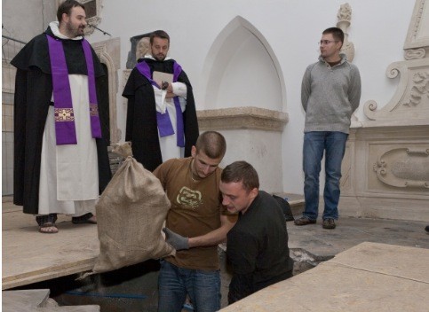 Ludzkie kości wydobyto podczas prac remontowych w krużgankach klasztoru, gdzie niegdyś chowano zmarłych. „Pragnąc uszanować ludzkie szczątki, zebraliśmy wszystkie wykopaliska i postanowiliśmy ze czcią je pochować” – mówi przeor krakowskich dominikanów, o. Paweł Kozacki.