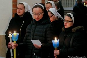Z kościoła seminaryjnego w procesji z zapalonymi świecami osoby konsekrowane przeszły do bazyliki archikatedralnej. Tam bp Piotr Jarecki odprawił Mszę św. w intencji wszystkich konsekrowanych oraz o nowe powołania do tego typu służby.