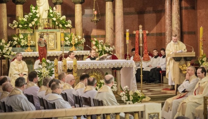 Spotkanie rozpoczęliśmy Mszą św. w Bazylice Najświętszego Serca na ul. Kopernika 26. Homilię wygłosił Ojciec Asystent ds. Europy Środkowej i Wschodniej – Tomasz Kot SJ, który zwrócił nam uwagę na wagę powrotu do korzeni – w naszym życiu zakonnym powinniśmy przede wszystkim głosić Dobrą Nowinę i prawdę o Królestwie Bożym. To nie Towarzystwo Jezusowe jest dla nas najważniejsze, ale Bóg który to Towarzystwo ma.