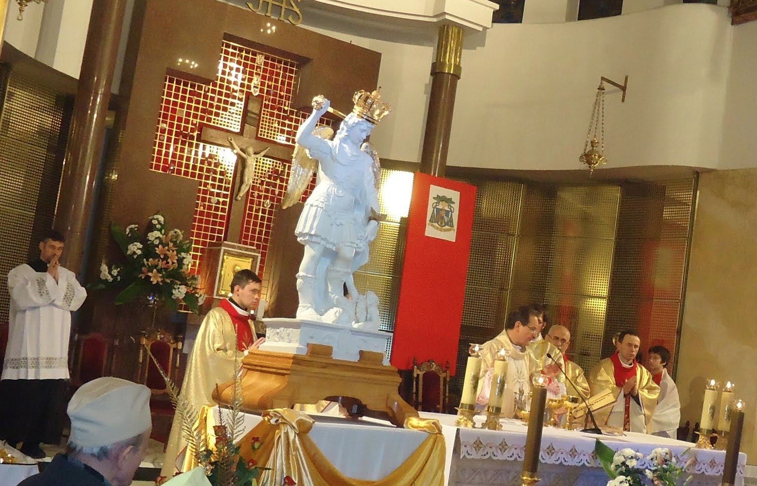 W dniu powitania figury św. Michała Archanioła, uroczystej mszy świętej wieczornej przewodniczył warszawski biskup pomocniczy o anielskim imieniu – bp. Rafał Markiewicz. On też wprowadził procesyjnie figurę św. Michała Archanioła do świątyni . W koncelebrze udział wzięli ks. Piotr Prusakiewicz CSMA – redaktor naczelny dwumiesięcznika „Któż jak Bóg”, miejscowi księża oraz proboszcz parafii .św. Stanisława Kostki, ks. prał. Tadeusz Bożełko.