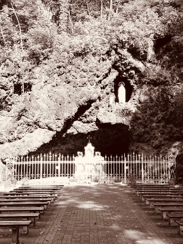 Początki klasztoru panewnickiego związane są w sposób szczególny z grotą ku czci Matki Bożej Lurdzkiej. Ta piękna budowla na brzegami rzeki Kłodnicy, która była pierwotnym miejscem tutejszego kultu, w znacznym stopniu umożliwiła budowę samej bazyliki i klasztoru w Panewnikach. Często przypominał o tym budowniczy klasztoru o. Wilhelm Rogosz: Grota zbudowała nam kościół i klasztor.
