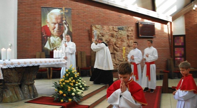 Przełożony Prowincji Zwiastowania Pańskiego przybył prosto z Kapituły Generalnej – z Rzymu do Gdańska – do naszej parafii, aby przewodniczyć uroczystości wprowadzenia do świątyni relikwii św. Jana Pawła II. Uroczysta Eucharystia była sprawowana o godz. 12.00. Przed jej rozpoczęciem dwoje parafian wniosło relikwiarz ze szczątkami Świętego Papieża (kropla krwi). Wydarzenie to wypełniło po brzegi naszą świątynię wiernymi z parafii oraz środowiskiem służby zdrowia i uczelni medycznej, na czele z Rektorem p. Marcinem Gruchałą.