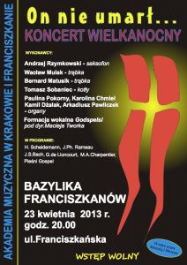 Koncert wielkanocny odbywa się w ramach wspólnej inicjatywy Krakowskiej Akademii Muzycznej i Zakonu Franciszkanów. Spotkania słowno-muzyczne w klasztorze odbywają się co miesiąc od tego roku.