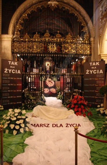 „Wiemy, jaki jest dziś przyrost naturalny w naszym kraju, chcą przedłużać czas pracy, ale nikt nie mówi o dzieciach. W tej dekoracji Grobu Pańskiego chciałem pokazać na przestrzeni 10 lat, ile w Polsce dzieci przychodzi na świat, a ile osób odchodzi z tego świata. Są cyfry – od roku 2002 do 2011. Warto się na tym zastanowić” – mówi jasnogórski dekorator o. Bronisław Kraszewski.