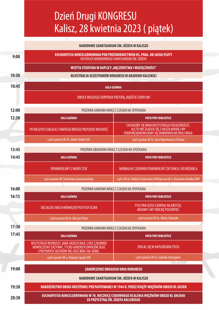Na zakończenie, w Narodowym Sanktuarium Świętego Józefa w Kaliszu, planowane jest Nabożeństwo Drogi Krzyżowej, która została przygotowana 14 lutego 1945 r. przez Księży-Więźniów niemieckiego obozu koncentracyjnego w KL Gusen.