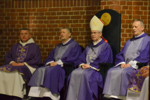Przewodniczył on też Eucharystii, którą wraz z nim koncelebrowali: o. Marian Gołąb – prowincjał krakowskiej prowincji franciszkanów, ks. dziekan Zbigniew Irzyk oraz kapłani wspólnoty klasztornej w Jaśle na czele z o. Pawłem Sroką – gwardianem i proboszczem parafii św. Antoniego z Padwy.