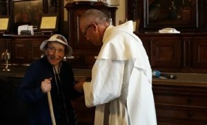 Z włoską pątniczką spotkał się o. Marian Waligóra, przeor Jasnej Góry, wręczając jej pamiątki z sanktuarium jasnogórskiego. Obecni byli także: o. Waldemar Pastusiak, kustosz Jasnej Góry i o. Michał Legan, który, pełniąc funkcję tłumacza, zaopiekował się także wyjątkową pątniczką. Sympatyczne spotkanie włoska pątniczka miała także z s. Teresą Wach, urszulanką z Jasnogórskiego Centrum Informacji, która oprowadzała ją po Jasnej Górze podczas poprzedniej wizyty. S. Teresa przedstawiła panią Emmę grupie włoskich pielgrzymów, goszczących właśnie na Jasnej Górze – pielgrzymi powitali ją bardzo entuzjastycznie.