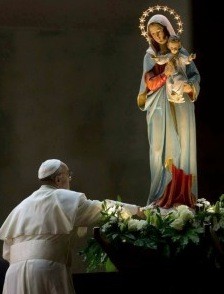 Nabożeństwem maryjnym sprawowanym na placu przed bazyliką watykańską uroczyście rozpoczęły się Dni Maryjne. Ich kulminacją będzie jutrzejsza Eucharystia, podczas której Franciszek zawierzy świat Matce Bożej Fatimskiej. Jej oryginalna figura przybyła z tej okazji do Watykanu. Jako pierwszy modlił się przed nią Benedykt XVI, a następnie w Domu św. Marty figurę powitał Papież Franciszek. Później w asyście watykańskiej żandarmerii i Gwardii Szwajcarskiej pielgrzymowała ona wśród wiernych przybyłych na Plac św. Piotra.