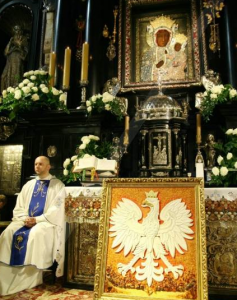 Godło Rzeczypospolitej Polskiej – orła białego w bursztynie złożyli jako wotum na Jasnej Górze przedstawiciele Naczelnego Urzędu Celnego.