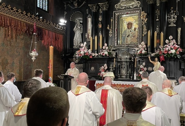Mszy św. w Kaplicy Matki Bożej z udziałem liderów poszczególnych kompanii pieszych przewodniczył bp Krzysztof Zadarko. Kapłanów powitał w progach Sanktuarium przeor Jasnej Góry o. Samuel Pacholski, dziękując im za wiarę, pomysłowość i hart ducha oraz za to, że dbają, by w trudnym czasie pandemii zachować ciągłość tradycji pielgrzymowania.