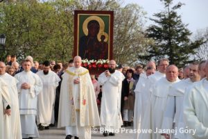 : W wigilię uroczystości Matki Bożej Królowej Polski, naszej Matki i Królowej przybywamy na Jasną Górę, aby wyrazić naszą wdzięczność, hołd i uznanie z pokorą, że mamy taką Matkę, która jest Królową, że mamy taką Królową, która jest naszą Matką, która nigdy nas nie zostawia, która nigdy nas nie opuszcza, a wręcz przeciwnie, jest z nami w chwilach radosnych i smutnych”.