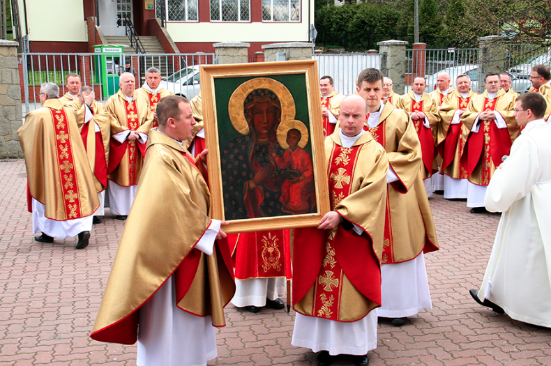 W poniedziałek 24 kwietnia obraz powitali ordynariusz diecezji bp Jan Wątroba i ks. prowincjał Andrzej Zagórski MS.