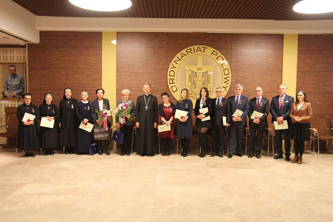 Po Mszy św. w sali konferencyjnej przy katedrze polowej bp Józef Guzdek odznaczył medalem „W Służbie Bogu i Ojczyźnie” mamę śp. bpa Tadeusza Płoskiego, księży kapelanów, żołnierzy oraz pracowników kurii ordynariatu polowego. W tym gronie znalazły się m.in. p. Wanda Krześniak oraz Maria Koziarska. Odznaczenie otrzymała także s. Albina Kłusek, służebniczka dębicka, pełniącą funkcję zakrystianki w okresie posługi bpa Sławoja Leszka Głódzia jako biskupa polowego. Biskup Józef Guzdek docenił także zaangażowanie pracowników katedry polowej Wojska Polskiego oraz Caritas Ordynariatu Polowego Wojska Polskiego.