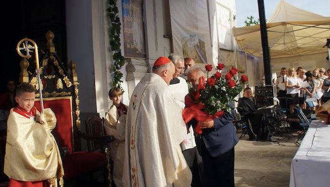 – Przed 250 laty koronacja odbyła się z udziałem wielkich ludzi tamtych czasów i ówczesnego kościoła, był tutaj obecny biskup Ignacy Krasicki. Tutaj ciągle dotykamy wielkiej historii, w tym miejscu uroczym i małym. Ten Obraz Świętej Rodziny słynie cudami, które tutaj się działy, ale też tradycją modlitwy, która przy nim wciąż trwa. Do tego bożego miejsca przez minione wieki przybywali nasi przodkowie, aby pokłonić się i modlić przed obrazem Świętej Rodziny z Nazaretu… Dziś dziękujemy za dar tego szczególnego miejsca, które od tylu wieków jest znakiem na ziemi, jest miejscem, w którym Bóg posługuje się wieloma znakami, których doświadczają i czują ludzie… Wiara, to piękne słowo, bez którego trudno jest budować życie… – mówił Kardynał Kazimierz Nycz, który w swojej homilii wielokrotnie nawiązywał do wielowiekowej historii miedniewickiego sanktuarium. Do miejsca, które było celem pielgrzymek setek tysięcy ludzi, ale także wielkich tego świata – polskich królów, książąt, biskupów i nuncjuszy papieskich. – … Ten obraz prowadzi nas prosto do Nazaretu, do domu Świętej Rodziny, do Jezusa, Maryi i Józefa… – usłyszały słowa metropolity, setki osób zebranych na dziedzińcu Sanktuarium w Miedniewicach.