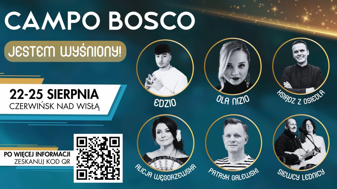 Ksiądz z Osiedla, czyli ks. Rafał Główczyński SDS, raper Bęsiu, dziennikarz Paweł Kęska, solistka operowa Alicja Węgorzewska i Siewcy Lednicy będą gośćmi XXXI Festiwalu Campo Bosco pt. „Jestem Wyśniony” w dniach 22-25 sierpnia w Czerwińsku nad Wisłą, w diecezji płockiej. Uczestnicząca w nim młodzież będzie razem się modlić, szkolić i słuchać koncertów. Udział zapowiedział też biskup płocki Szymon Stułkowski.