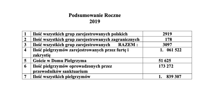 Ilość pielgrzymów zarejestrowanych przez klasztorną furtę i zakrystię: 1.061 522.