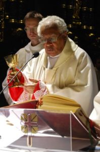 Ksiądz Biskup razem z naszą wspólnotą parafialną modlił się na Eucharystii o godzinie 19.00 w intencji męczenników. Podczas homilii zwrócił uwagę na dar jakim dla Kościoła Powszechnego jest męczeństwo składane przez chrześcijan Afryki. Opisał także swoje osobiste doświadczenia związane z ucieczką z miejsca zamieszkania i udaniem się wraz z diecezjanami na tereny niezamieszane, aby ocalić życie. Dziękował za już okazaną życzliwość i prosił o dalszą modlitwę. Zapewnił o wdzięczności Kościoła Uciskanego. Po Mszy Świętej udał się na spotkanie z młodzieżą do duszpasterstwa akademickiego OO. Dominikanów.